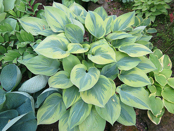 This majestic hosta with its upright form commands attention. Displays beautiful dark green leaves edged with a bright golden margin. Garden designers find its vase-shaped growth habit very desirable. Grows to 5 feet wide and 32 inches tall. Large rooted plants being sold with this variety. Zones 3-9.