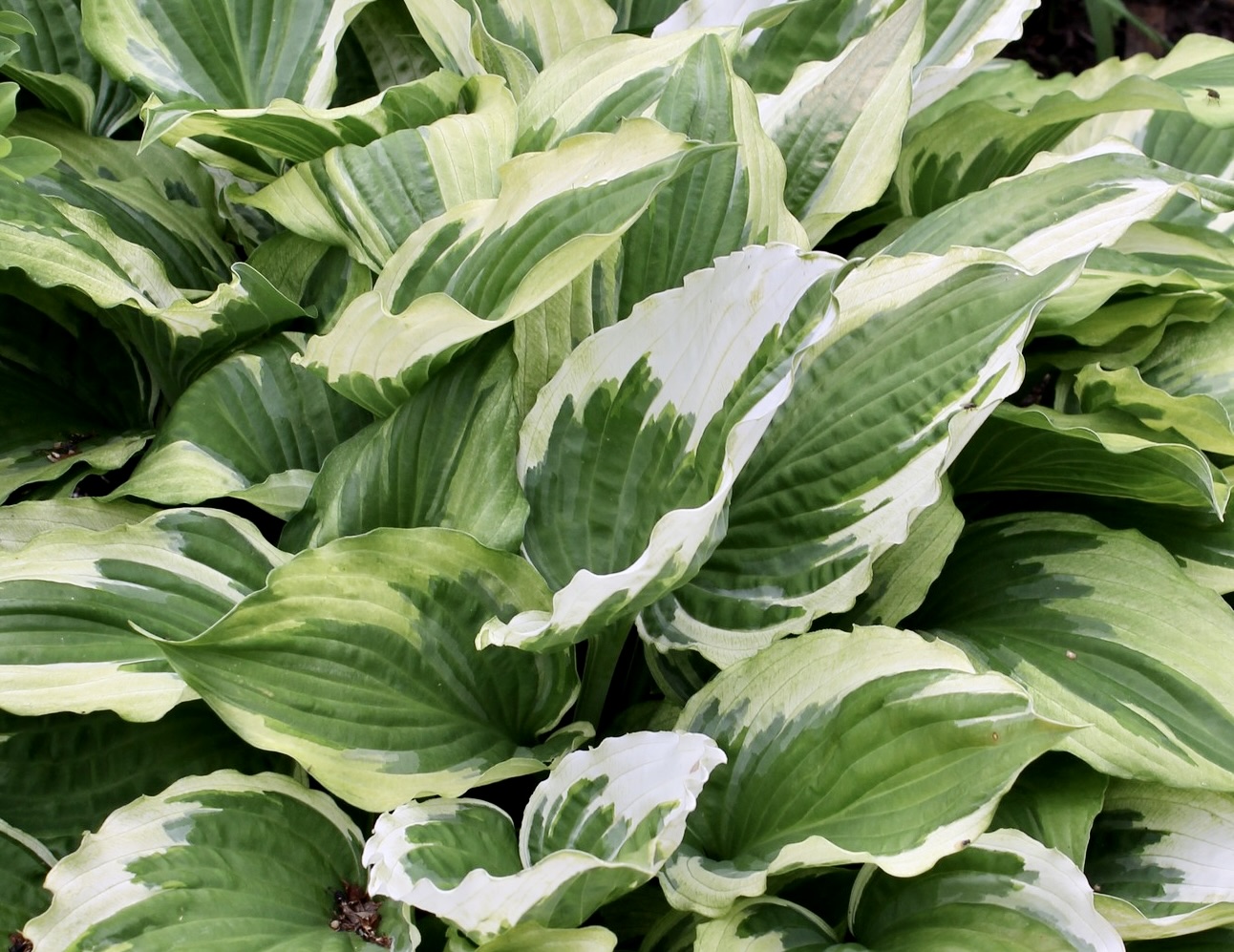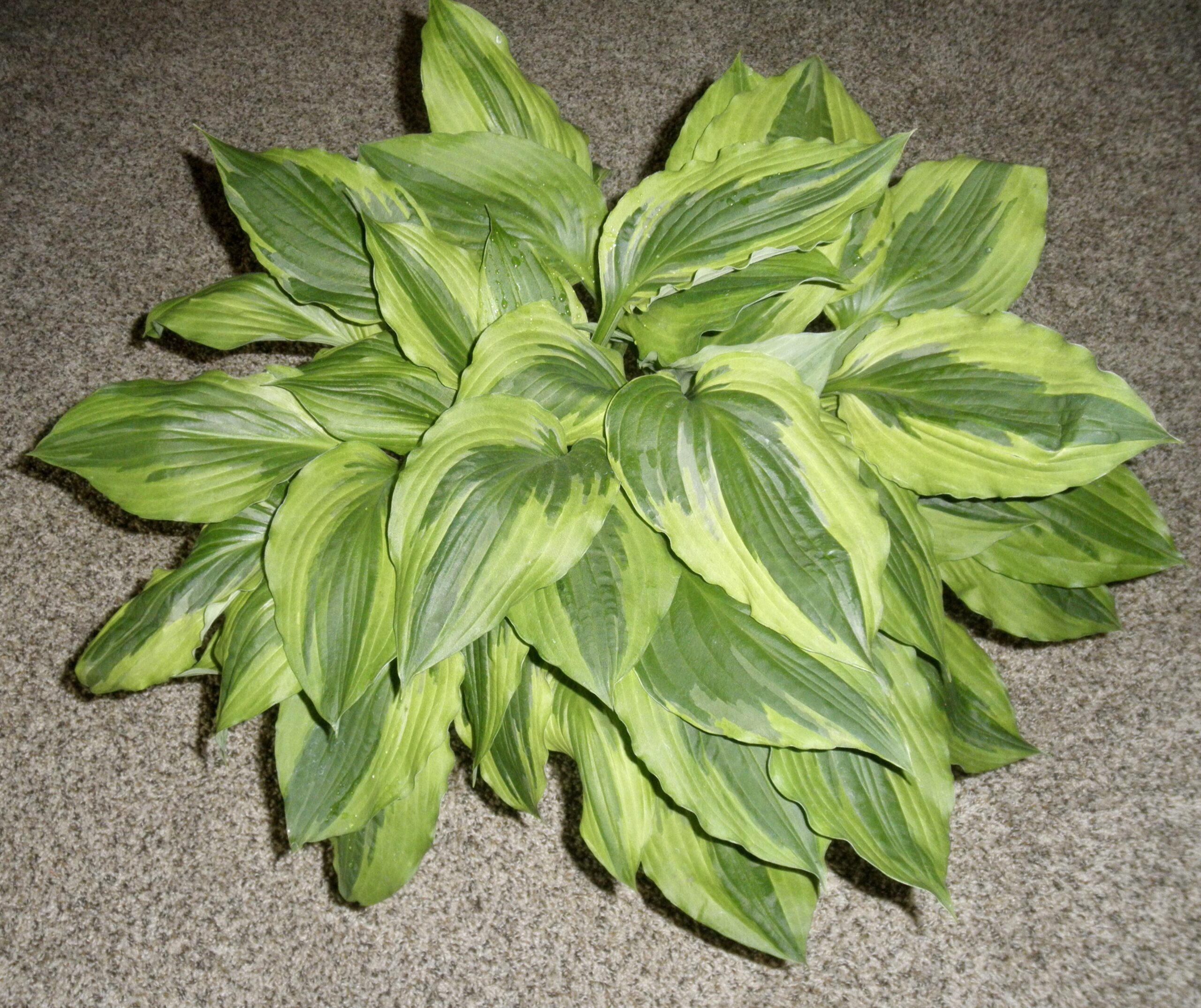 A lovely sport of ‘Night Before Christmas’. Nicely corrugated green leaves with a creamy white edge. In late summer the leaves turn all green. Lavender flowers in summer. Matures 24 inches high and 48 inches wide. Zones 3-9.