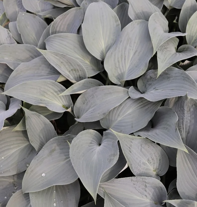 This cross of ‘Summer Squall’ and ‘Fragrant Blue’ has upright leaves of thick substance and a waxy blue color that holds well in the heat of summer.